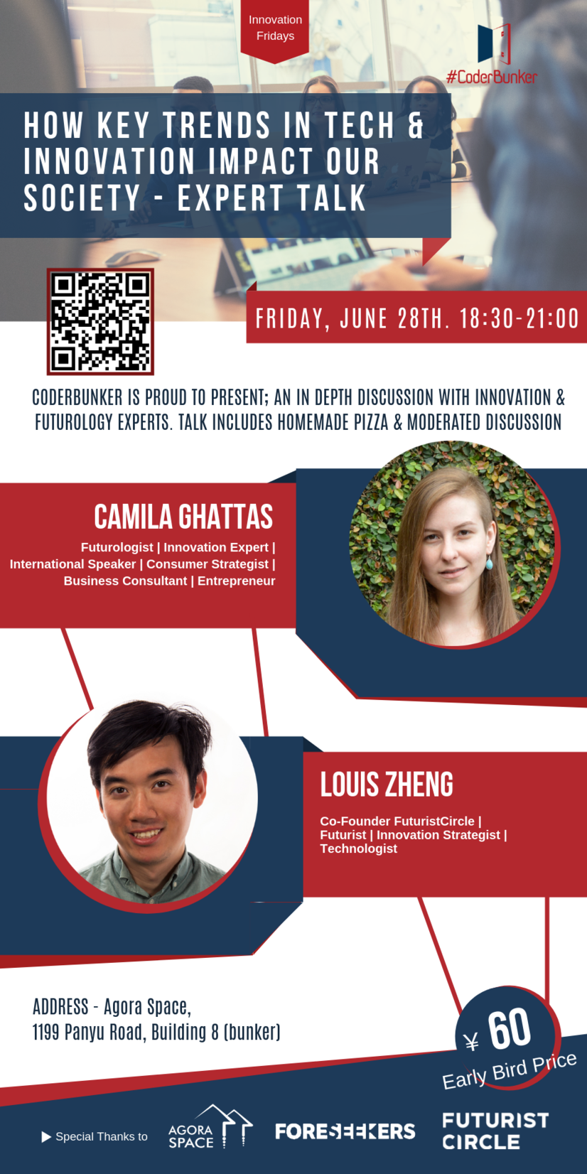 <Camila Ghattas>Camila Ghattas is a futurologist and entrepreneur, expert in market strategies and exponential technologies. She co-founded diip, an innovation consultancy and was the Latin American Head of Futurology in the international branding agency CBA, alongside several diverse projects. In China, Camila founded Foreseeksers, a multicultural platform to inspire, teach and unite people to reflect upon the importance of future-thinking, creativity and innovation.