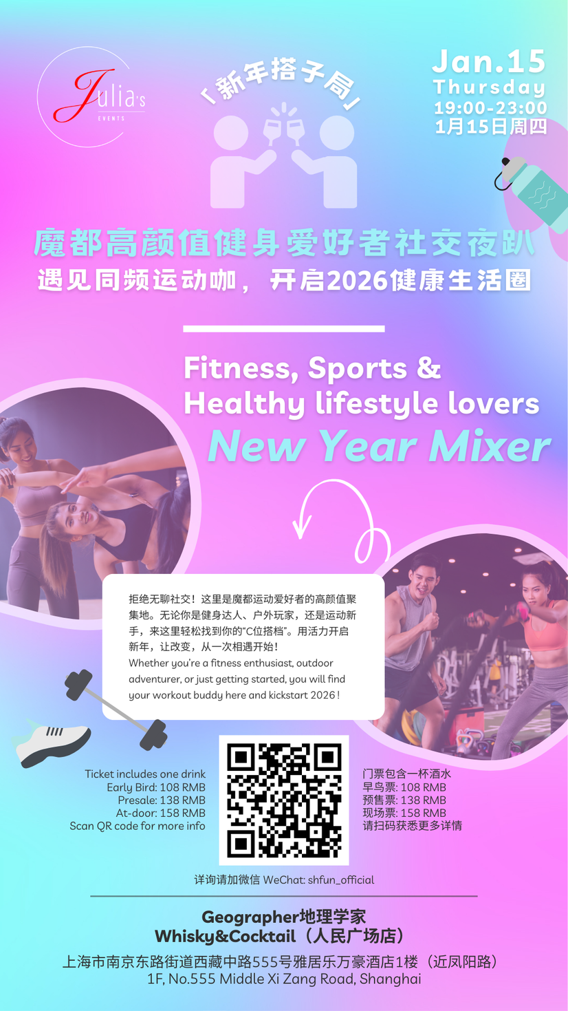【1.15】魔都高颜值健身爱好者社交夜趴 Fitness, Sports & Healthy Lifestyle Lovers New Year Mixer