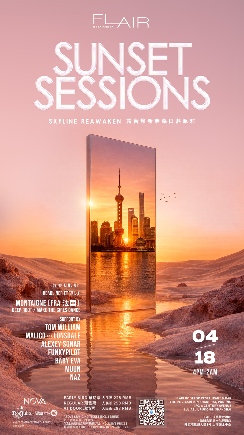 Saturday, April 18 16:00 to Sunday, April 19, 2026 02:00 FLAIR ROOFTOP RESTAURANT & BAR THE RITZ-CARLTON SHANGHAI IFC, 8 CENTURY AVENUE LUUIAZUI, PUDONG, SHANGHAI FLAIR 顶层餐厅酒吧 上海浦东丽思卡尔顿酒店 陆家嘴世纪大道8号 上海国金中心