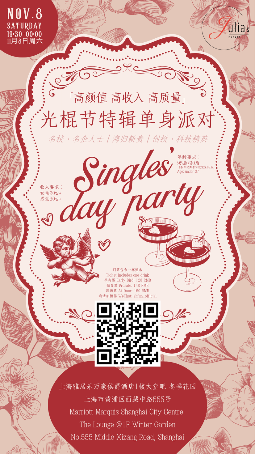【11.8】「高颜值 高收入 高质量」光棍节特辑单身派对 Singles' Day Party