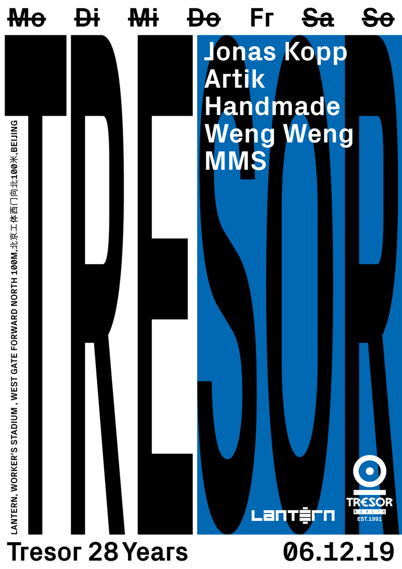 Tresor俱乐部为此派出三位优秀的techno 艺人前来,他们是Tresor厂牌旗下艺人Jonas Kopp、俱乐部驻场Handmade、Artik。同时灯笼俱乐部主理人WENG WENG和常驻北京的德国艺术季MMS将共同参与这一盛事。