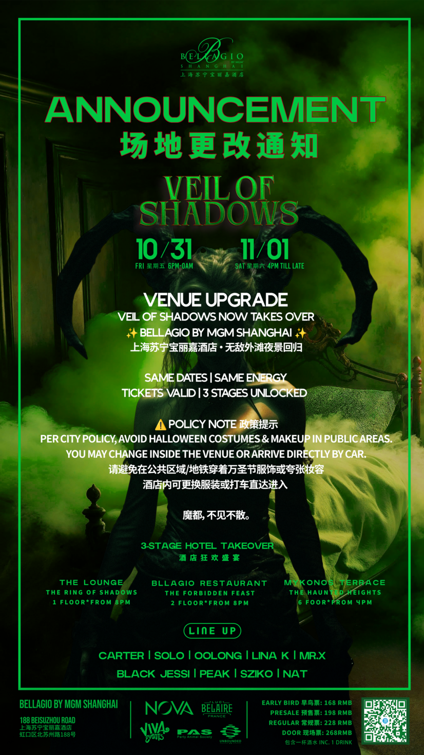 10.31(FRI) & 11.01(SAT)| VEIL OF SHADOWS @BELLAGIO Shanghai