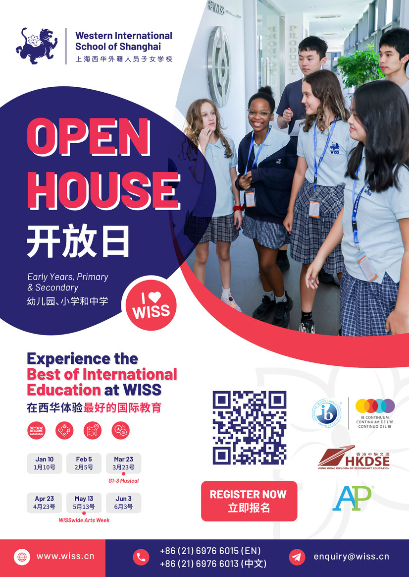 我们诚挚邀请意向家长与学生参加上海西华外籍人员子女学校(WISS)的下一场校园开放日活动。走进校园,亲身体验那份塑造了我们独特教育社区的活力与关怀。