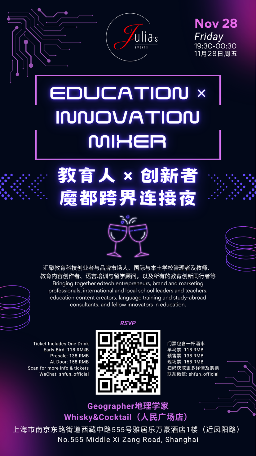 【11.28】教育人×创新者魔都跨界连接夜 Education×Innovation Mixer In Shanghai