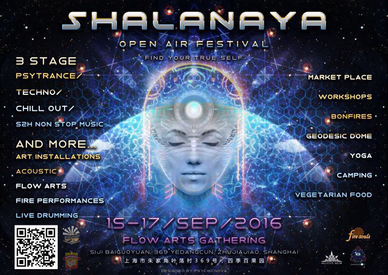 Fire Souls, Shanghai's lead fire dancers and glow performers group will bring in China's first ever flow arts gathering at Shalanaya this year. With impressive and mesmerising fire and glow performances at night, there will also be multiple flow arts workshops during the day... we invite you to come and experience flow arts, they are a new way of dancing, exploring space and movement, meditating, having fun, performing and a new way to creative expression! Poi, hoop, staff, double staff, dragon staff, nunchakus, and much more to expect !