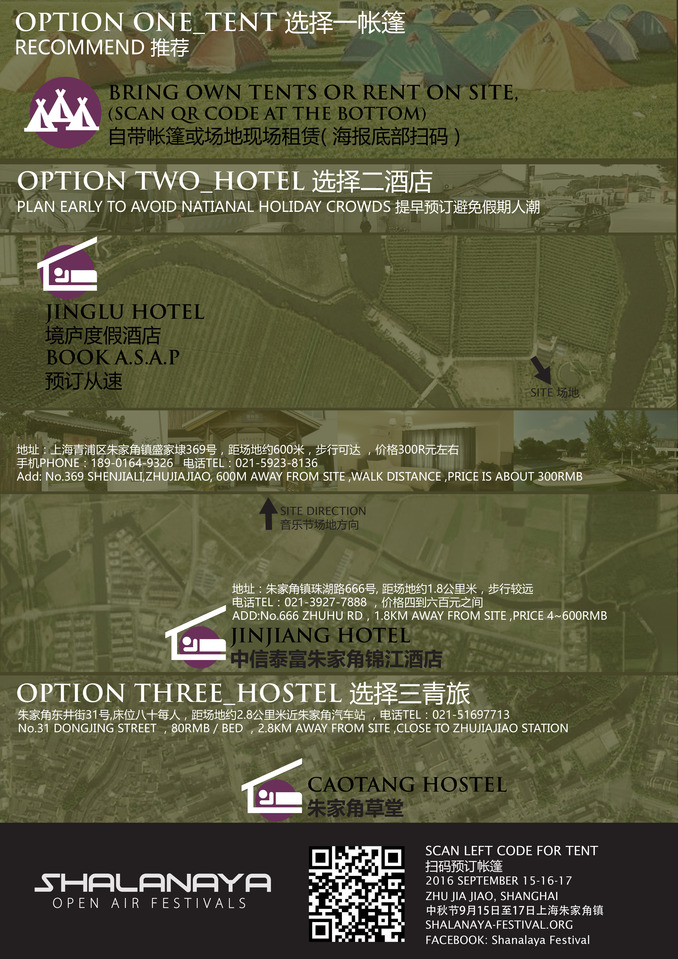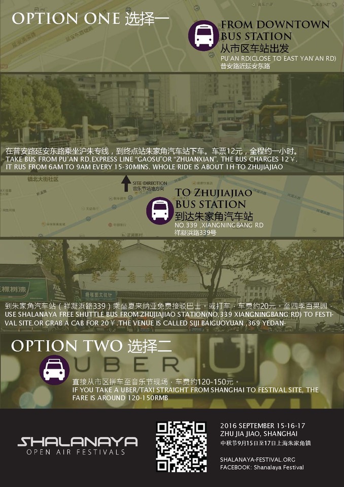 Free shuttle bus: There will be free shuttle buses from Zhujiajiao to Shalanaya music festival site.