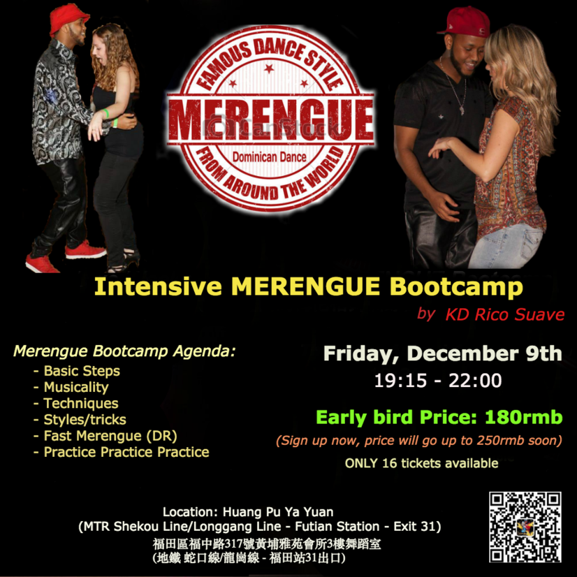 if you answer yes, this is your ONLY chance to learn the most fun, exciting, playful dance, MERENGUE. We will have 2.5 hours of intensive Merengue workshop. At the end of the workshop, you'll be able to dance merengue in different styles and feel very confident on the dance floor.