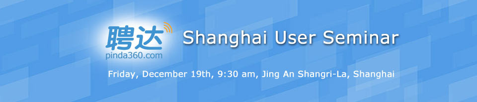 | User Seminar | Following the successful User Seminar in Beijing, Pinda360.com will hold its first user seminar in Shanghai to introduce the recruiting platform’s functions and services. The invited attendees are company hiring managers, HR directors, senior headhunting professionals, and media. | ||||||||||