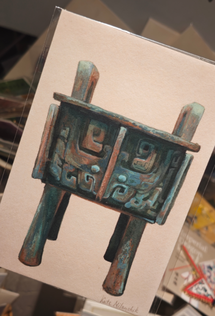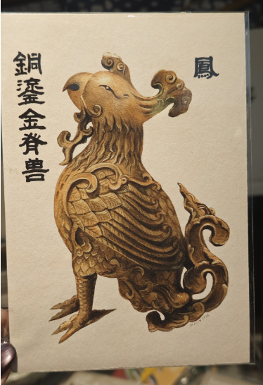 明信片_中国古代文物手绘插画 : 仙人骑凤 修复龙泉窑碗 嵌绿松石象牙杯 钧炉 青铜方鼎 垂兽 海马 天马 龙 凤 狎鱼 獬豸 狮子 磁州窑白底黑花花卉纹梅瓶 错金博山炉 铜鎏金佛教造像 嵌绿松石兽面纹铜牌饰 唐代鸳鸯莲瓣纹金碗 青花喜鹊登梅纹双耳扁瓶 满城长信宫灯 青花海水云龙纹扁瓶 满城青铜壶 唐代舞马衔杯银壶 吻兽 青铜构件 祭蓝釉金彩牛纹双系罐 镶金兽首玛瑙杯 青铜马镇 滇王之印 三星堆青铜人面具 西周中期铜軏饰 彩塑跪坐菩萨像 曾仲斿父方壶 青铜鼎 错金银云纹青铜犀尊 铜鎏金貔貅砚盒 唐三彩马 朗窑红釉直颈瓶 古物栖居 红绿彩持莲童子 青花云龙纹盖罐 北齐黄釉胡人扁壶 青花云龙纹罐 青花釉里红梅花纹梅瓶 矾红彩云龙纹盖罐 黄釉鸡冠壶 奉食女陶俑 五彩鱼藻纹盖罐 粉彩九桃纹天球瓶 青釉凸花缠枝花卉纹瓶