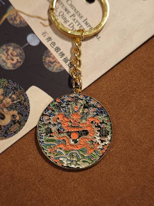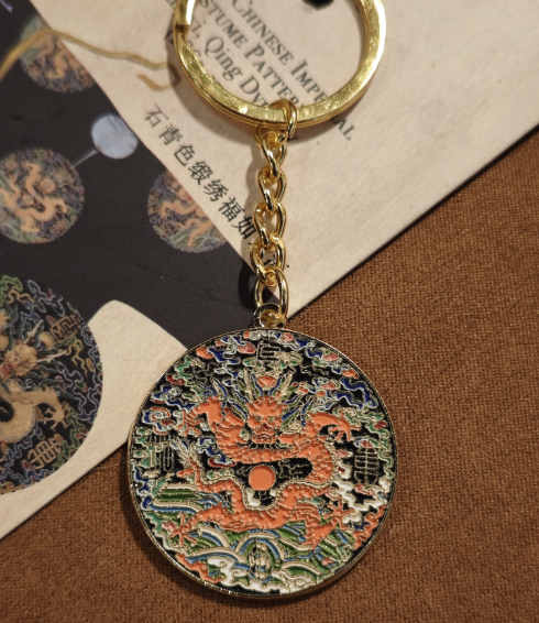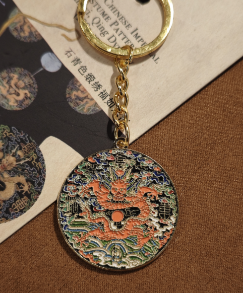 钥匙圈——石青色缎绣福如东海