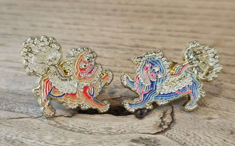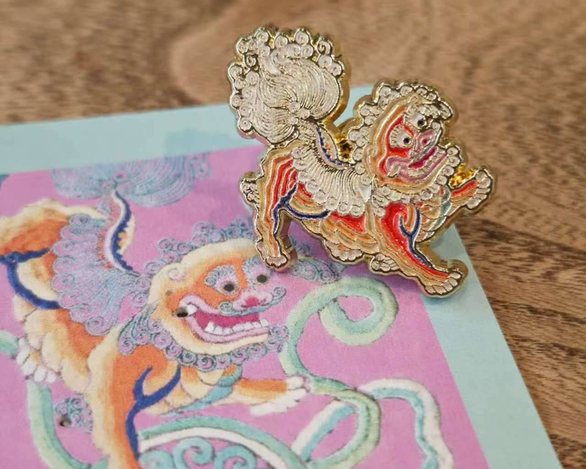 狮子滚绣球 好事在后头_小徽章 : 黄狮 蓝狮