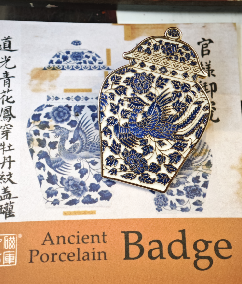 家财万贯_徽章——道光青花凤穿牡丹纹盖罐(官样御瓷系列)