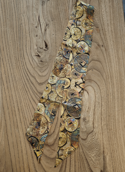 古代凡与发财有关的纹饰,大多用钱币来表示,比较常见的是以两枚或多枚钱币叠压,寓意财富堆集。